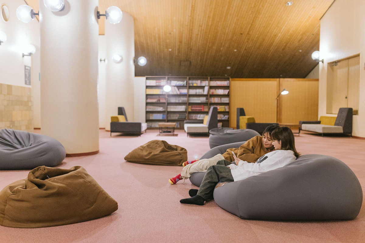 温泉から上がったら、リラックススペースでのんびりクールダウン。今日の滑りを動画でチェックしながら、友達と盛り上がる時間って最高に楽しいですよね♩