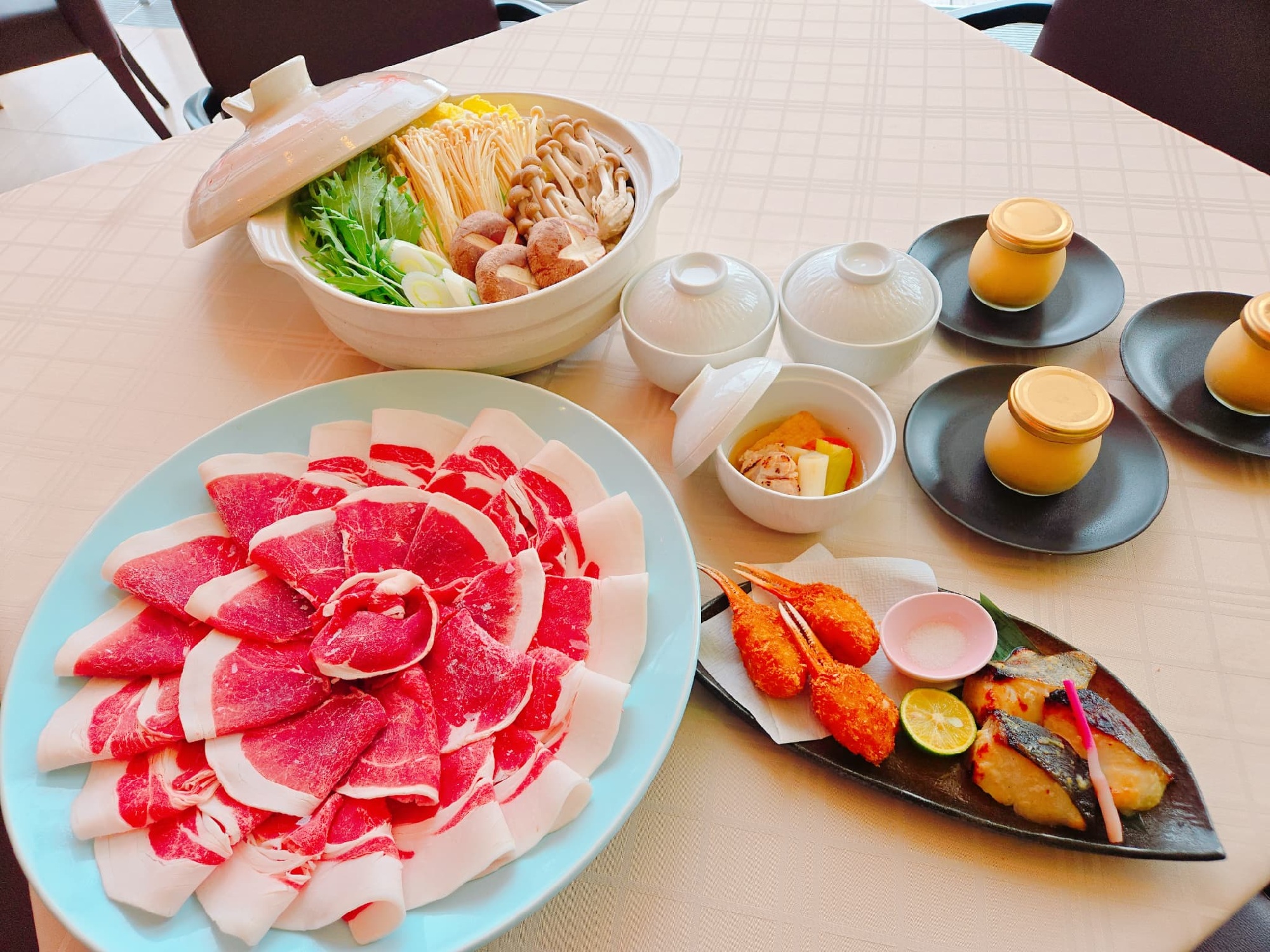 ホテルリラクシアのレストランでは、地元食材をふんだんに使用したこだわりの料理が魅力です。ディナーでは季節の味覚を取り入れた創作料理が並び、和洋折衷の創作料理やホテル特製のお鍋などが、旅の思い出をさらに彩ります。