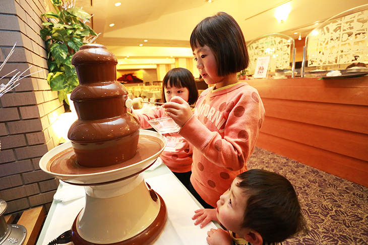 子どもや女性に大人気のチョコレートファウンテンは、食後のデザートにぴったり!(冬期週末・特定期間のみ)
