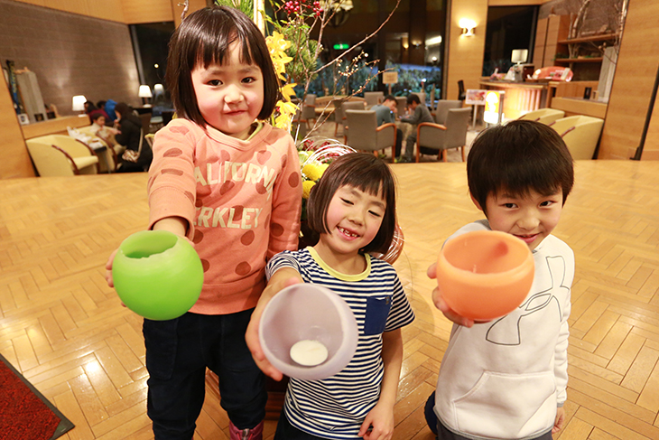 続いて手作りキャンドルライト作りにも挑戦!オレンジ、緑、青の3色から好きな色でキャンドルを作ることができる。スタッフが作り方を丁寧に教えてくれるので、小さいお子様でも簡単に作ることができる。10分程でかわいい手作りキャンドルライトが完成した。
