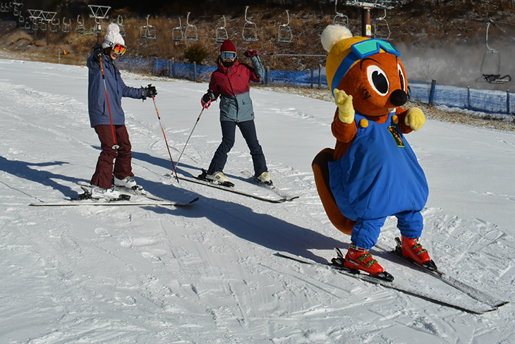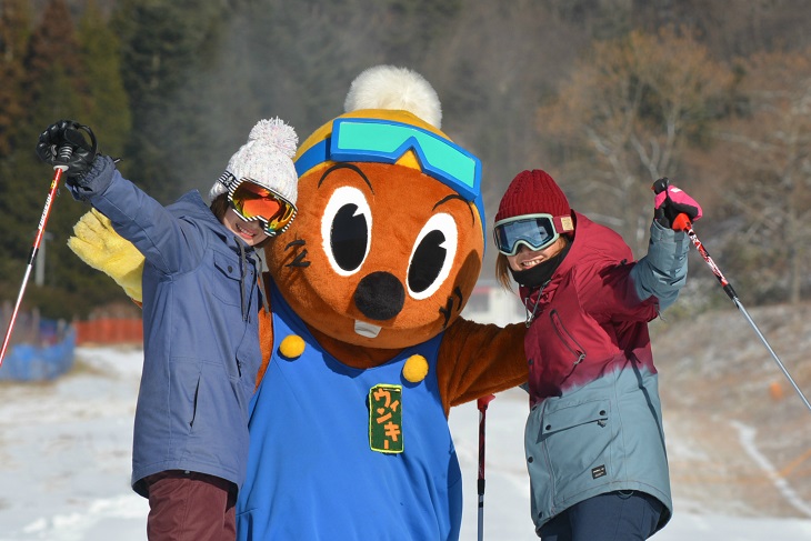雪遊びやソリが楽しめるキッズパーク「ウインキーパーク」。いろんな種類のソリを楽しんだり、雪の山によじ登ったり、子どもたちが元気いっぱいに遊んで過ごせる。スノーエスカレータが設置されているから、斜面を登るのもらくちんだ。入場料は1名500円。ゲレンデキャラクターの「ウインキー」がたびたびキッズパークに登場し、子どもたちをさらに楽しませてくれる。