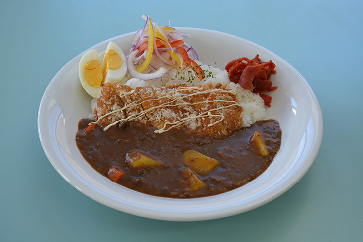 下味をつけた大きな鶏肉に片栗粉をまぶし、サクッと揚げた山賊揚げは信州の名物。これをトッピングした「さんぞくカレー」はご飯がどんどん進むボリューム満点メニュー。