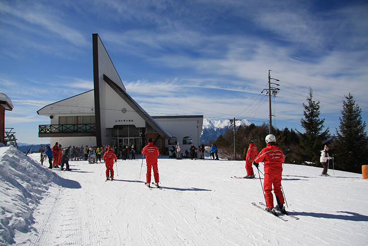 第一トリプルリフト降り場にある「レストラン白山」は、標高1500mに位置。御嶽山や乗鞍岳の名峰をはじめ、遠く白山連峰まで見渡せる、展望のよさが評判だ。