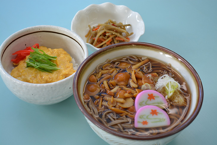 レストラン白山の人気メニューは「あったかナメコそばとミニたまご丼セット」。ナメコたっぷりの温かなそばは寒い日にぴったり。トロトロたまごをご飯にかけたミニ丼は、和洋のテイストが混ざった新鮮な一品。