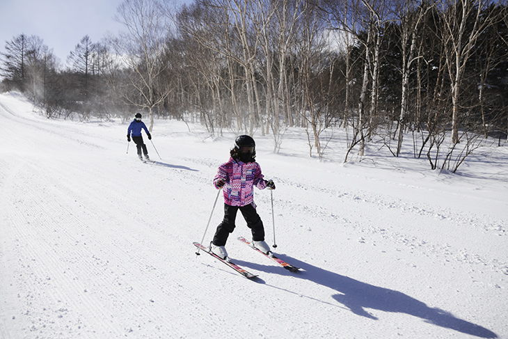 また、ロープウェイ山麓駅横にある青葉山ゲレンデは、クセのないフラットバーンを2コース備え、2本のリフトで回して滑れる。整地で高速カービングを楽しむなどじっくり滑りたい人におすすめのエリアだ。