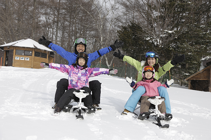 入場料は1000円で、子供1人につき保護者1人は無料。通常のソリは無料で利用でき、スノーランナーなどハンドル付きのユニークなソリは1時間単位で有料レンタル。また、お得なファミリーパック券もご用意。大人1名+ジュニア1名のリフト1日券セットが6400円。大人1人追加で3800円、子供は1人追加で2800円。