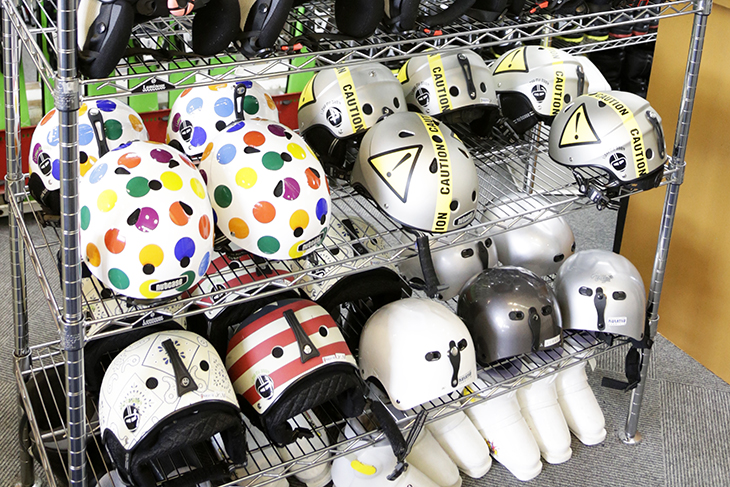 キッズ用のスキー&スノーボードも子供の体格に合わせた幅広いサイズを選べ、スキー・スノーボードのジュニアレンタル利用者にはヘルメットを無料で貸し出し(数量限定)。