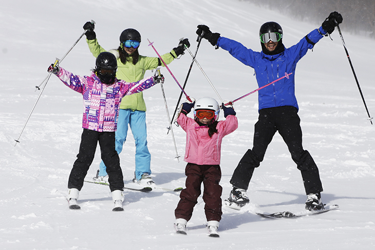 たくさん滑ったら温泉で体を癒し、家族みんなが笑顔で食卓を囲む。理想的なファミリースキー&スノーボードの旅を過ごせる。
