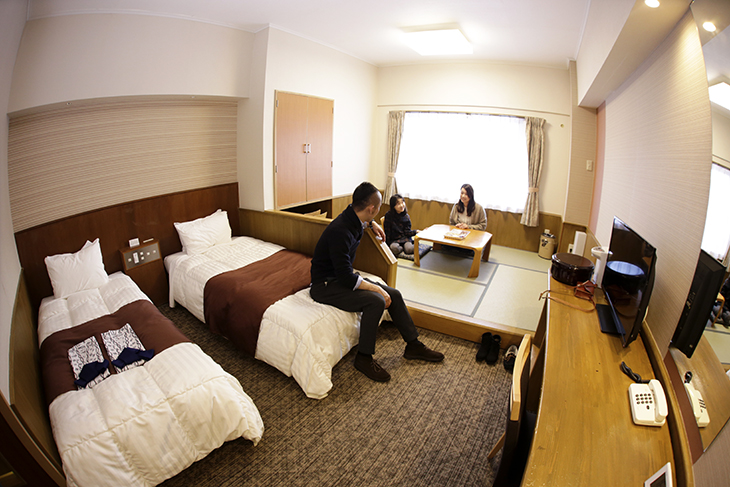 ホテルには要望に応じた5タイプの客室が全154室。畳スペースのある広々とした和洋室がファミリーに人気。