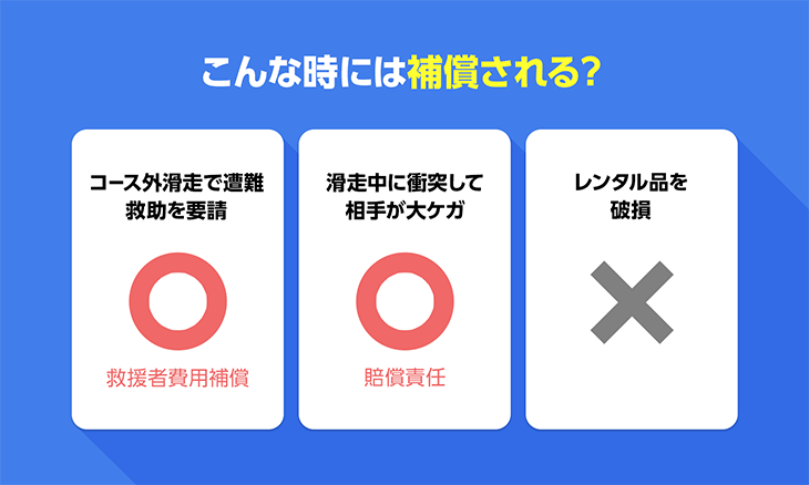 各スキー場のルールを守り、適切な装備をすることは大前提ですが、遭難発生時には下記の範囲内で支払い対象となります。
