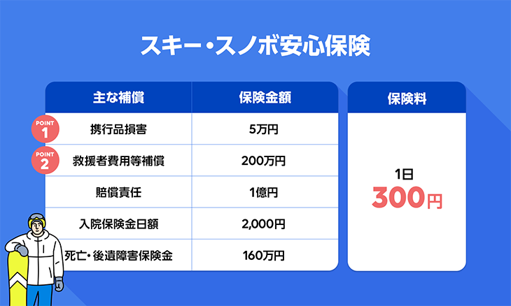 改めて『スキー・スノボ安心保険』の補償内容を整理してみます。