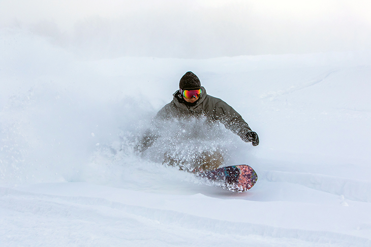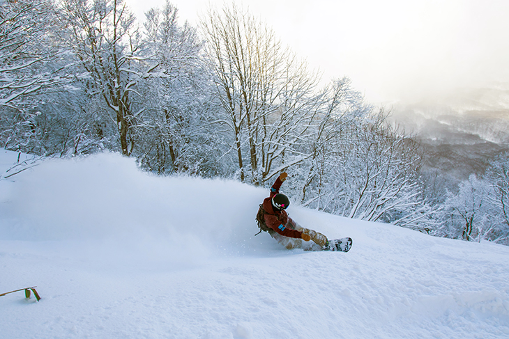 スノーボードに魅せられ雪山と関わり続けて、はや19年。今回の斑尾高原には、実はかなりパウダーの期待をよせている。