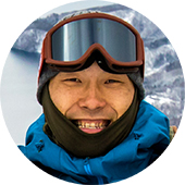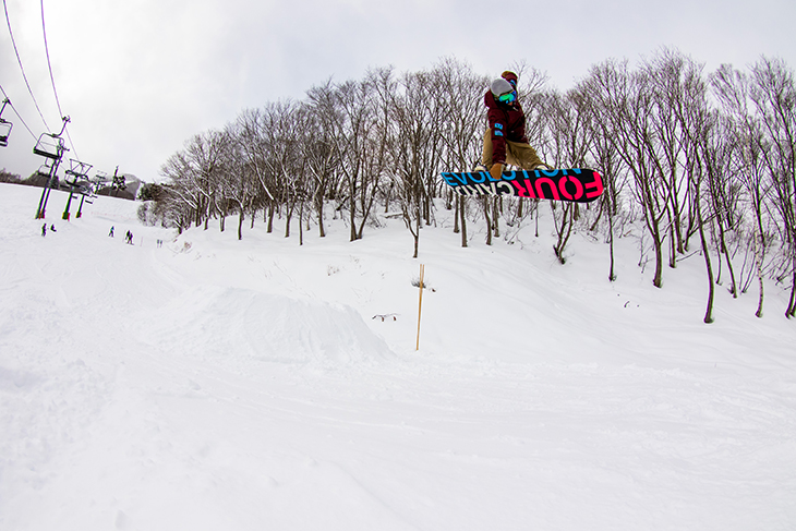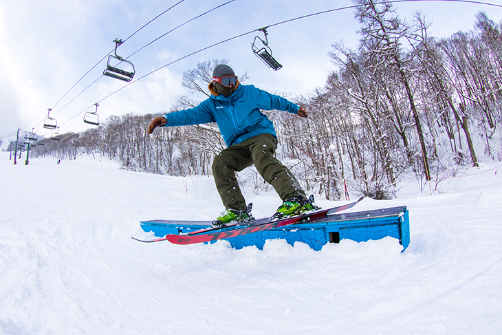 パウダーランはもちろんのこと、ジャンプやジブもこなすオールラウンドスキーヤー。自ら圧雪車を操り「Free Ride Park」のプロデュースも手がける。