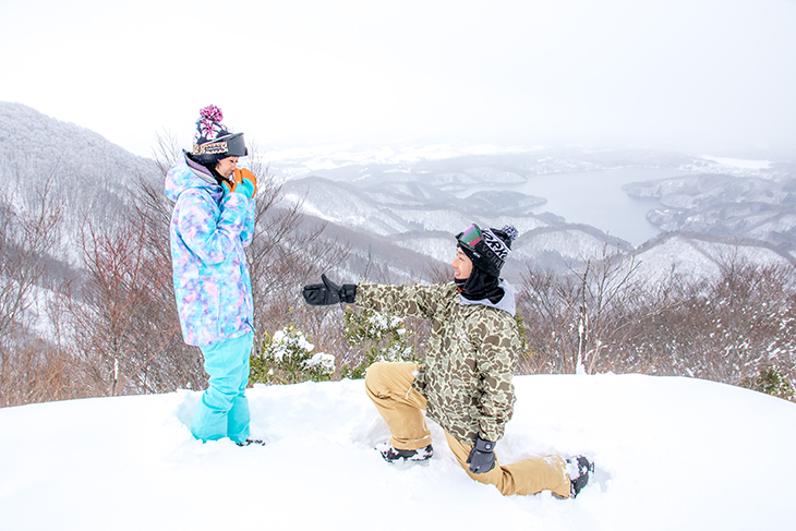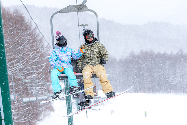 リフト乗車中は二人きりになれる絶好のチャンス!事前にコースレイアウトを頭に入れておけば、「次はあっちのコースに行ってみよう!」、「あのコースは地形がおもしろいよ!」など誘いやすい。