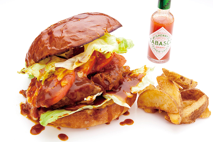 ビッグサイズのハンバーグと、スライストマトや野菜をたっぷり挟んだ、斑尾名物「BIG斑バーガー」はインスタ映えする人気メニュー。