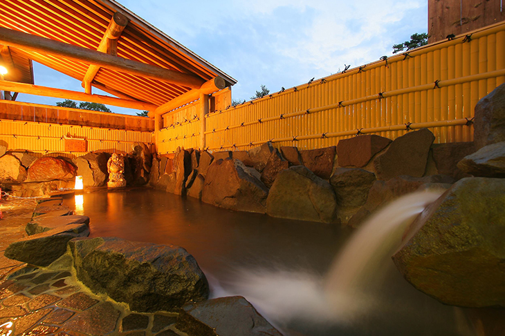 たっぷり滑ったあとは、まずは温泉で疲れを癒したい。斑尾高原ホテルの天然温泉はph9.1という全国的にも珍しい高アルカリ温泉。美肌に効果があると言われる女性に嬉しい湯。露天風呂で手足を伸ばして癒されながら、満天の星空を見上げたり、舞い落ちる雪に包まれたりして、冬の自然を感じることができる。