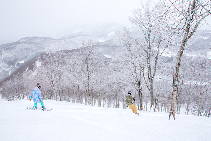 バリエーション豊富なゲレンデで二人のシュプールを描く