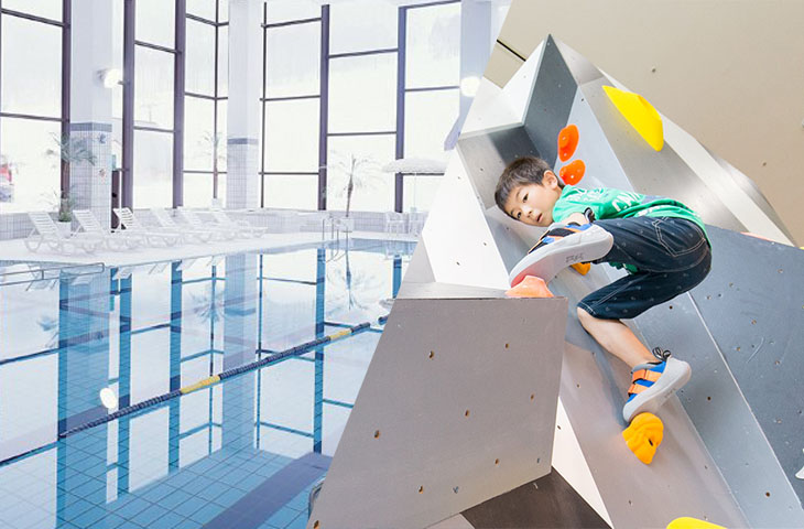 また、ゲレンデ直結の「ホテルタングラム」では、スキー場のセンターハウスとして、ホテル1階にはチケットセンター、レンタルカウンター、スクール受付などのサービスが揃い、その利便性も抜群。更に、スキー場としては珍しい室内プールやボルダリングが完備され、家族全員が楽しめるスキー場だ。