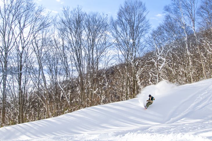 中でも森の中を滑るツリーランコースの数は日本一。「madapow」と称されるパウダーを楽しむフィールドが十分にそろっているのが、斑尾高原スキー場なのだ。
