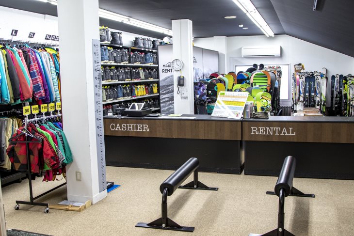 スキー場入口すぐのレストラン白樺内にスキー場直営のレンタルショップがある。ここは、レベル・コンディションに合わせた様々なギアをレンタルする事ができ、急なパウダーに遭遇しても問題なし。また、有名ブランドのテストセンターにもなっているので、ワンランク上の新しいモデルに試乗できる。さらに、各種グッズを販売しているので、忘れ物をしても問題なし。ロッカールームも併設しているので、荷物が多いファミリーにも便利な施設となっている。