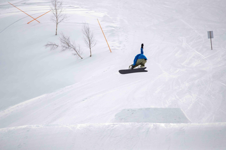 斑尾高原スキー場には、最も人の集まる「レストランハイジ」から、キッカー(ジャンプ台)が見えるんだよ。すなわち、そこを飛べば目立てるってこと。しかも、そのサイズが約8~10mだから小さすぎず大きすぎず、スタイルを出すにはちょうどいいサンズなんだよ。目立つから転んだら恥ずかしいじゃんって人はゲレンデで試す前にキングスやクエストっていうオフトレ施設が全国にあるから、そこでコソ練するといいよ。ジャンプした時も小さくなれるとかっこいいと思うよ。