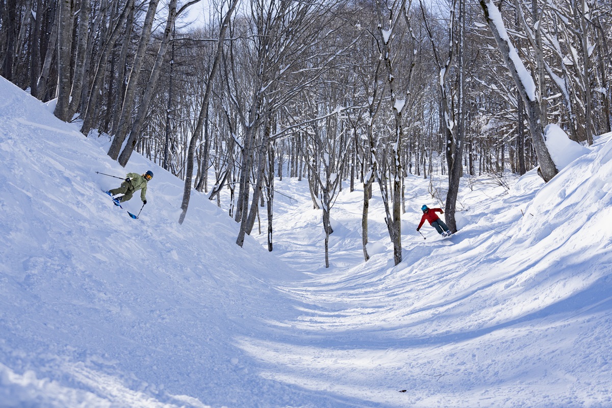 斑尾高原を初めて滑ってみて印象に残っているのが、リフト開始直後に滑った「チャンピオン」コースのノートラック。これが「Madapow」か!という雪と地形を感じさせられました。ゲレンデ自体はワイドなコースかつ、ホテルを目印に飛び込むような景色なので、初めてでも気兼ねなく滑れること、最上部の非圧雪エリアが充実している点や沢コースで地形とツリーの両方を手軽にエントリーして楽しめるのが魅力です。ワイドな圧雪、Madapow、沢やツリー....。レベルや条件、同伴する人に合わせて楽しめるバラエティの多さがポイントです。「また来たい」と思わせてくれるポテンシャルの高さを感じました。