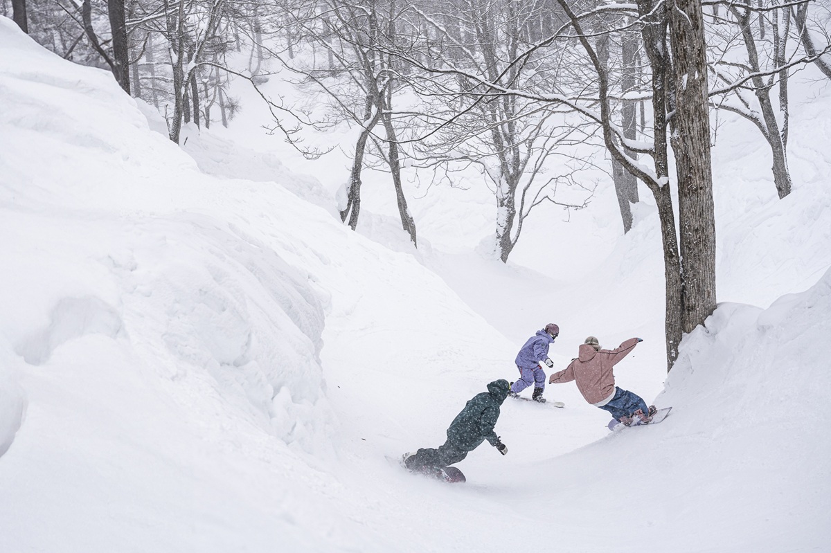 トップシーズンの斑尾高原に来たらやはり期待してしまう、柔らかなパウダースノー。長野県北部と新潟県との県境に位置する斑尾高原は、日本海側気候の影響を強く受け、北西季節風の影響が重なって大量の降雪があるうえに高地の地形や気温が低いという特徴もあり、屈指の降雪量を誇る。そんな豊富で上質なMadapowを堪能できる管理された静かな森の中のツリーランコースや、天然地形が面白いSAWAコースは、ぜひ一度は体験したい。