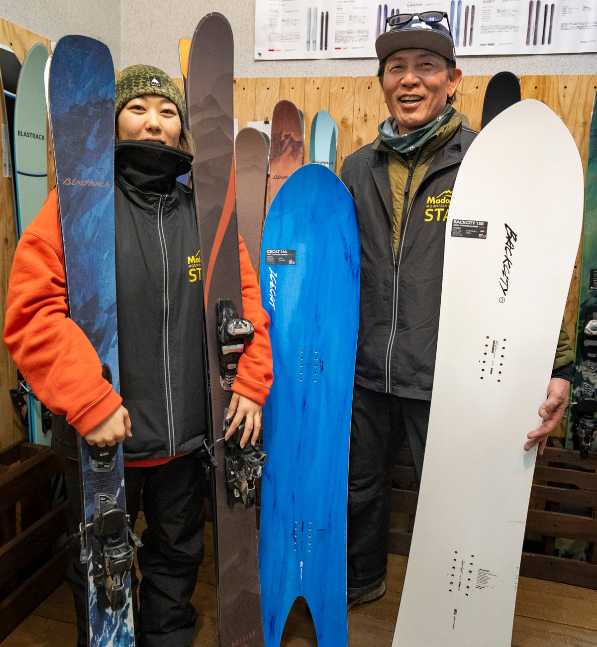 そんな極上スノーを誰もが楽しめるよう、今シーズンよりオープンしたレストランハイジ内のパウダーステーションでは、当日のツリーランコースや非圧雪エリアのコンディション情報の提供や、斑尾高原スキー場が初めての場合でも安心してパウダーやツリーランコースが楽しめるゲレンデガイドサービスを行っている。さらに、最新パウダーボードやスキーの試乗もできるので、ぜひ立ち寄ってみよう。