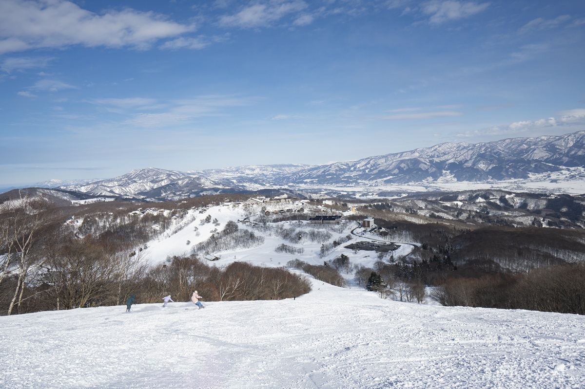 斑尾高原はコースの楽しさはもちろん、息を呑むほど美しい絶景も随一。天気が良ければ日本海まで拝める絶景を見おろしながら、爽快に滑るのはここでしか味わえない醍醐味!