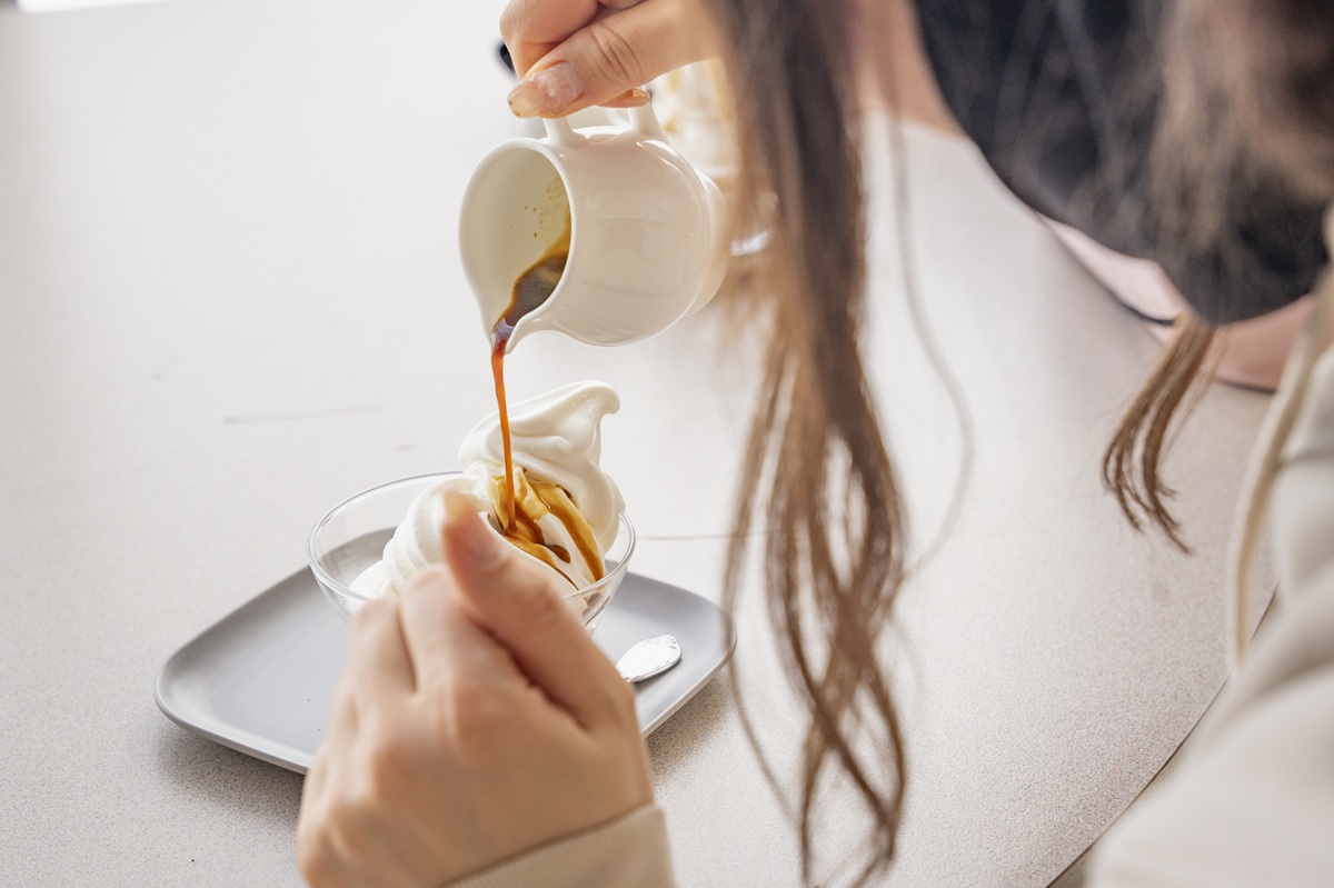 またコーヒーショップも併設しているので、ちょっとした休憩にも◎。3人はソフトクリームにエスプレッソを注いで楽しむ「アフォガード」の虜に!