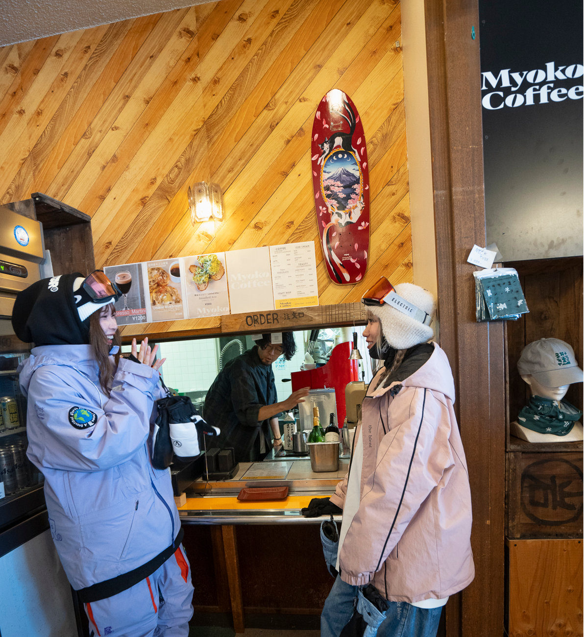 サクっとコーヒーブレイクをするなら、1Fの「MYOKO COFFEE」もおすすめ。MYOKO COFFEEは北信エリアに6店舗を構えるご当地スペシャリティコーヒーショップで、斑尾高原ホテル白樺レンタル内にひっそりと佇む。妙高高原駅前のアメリカ製大型焙煎機で焙煎される新鮮なコーヒーを、イタリアのレバーマシンでバリスタが抽出するコーヒーは、コーヒー好きにはぜひ試してもらいたい一杯。ハード系のパンを使用したオープントーストメニューも豊富で、日本各地の醸造所およそ十種類を超えるクラフトビールも販売している。