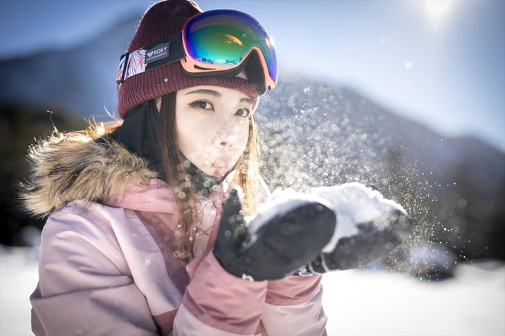 気温が低く内陸に位置していることから、雪の水分は限りなく抜けて軽くなり、やさしく息を吹きかけるだけでフワッと雪が舞い上がってくれるのだ。