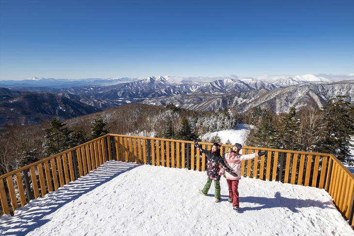 滑り出す前に山頂で楽しみたい「天空テラス」からの絶景