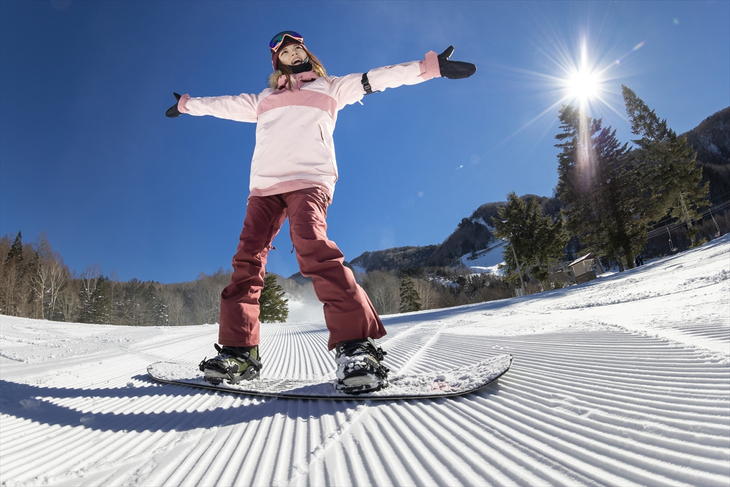 標高が低くなるので雪質は山頂付近とは多少違ってはくるものの、長く気持ちよく滑れるように、しっかりとコースを整備してあるのも丸沼高原スキー場の魅力だ。美しいコーデュロイ状に仕上げたコースはとても滑りやすい。