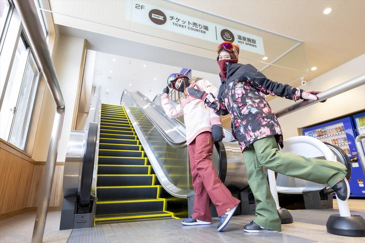 駐車場からゲレンデへは、センターステーションにあるエスカレーターでアクセスできるので楽々!