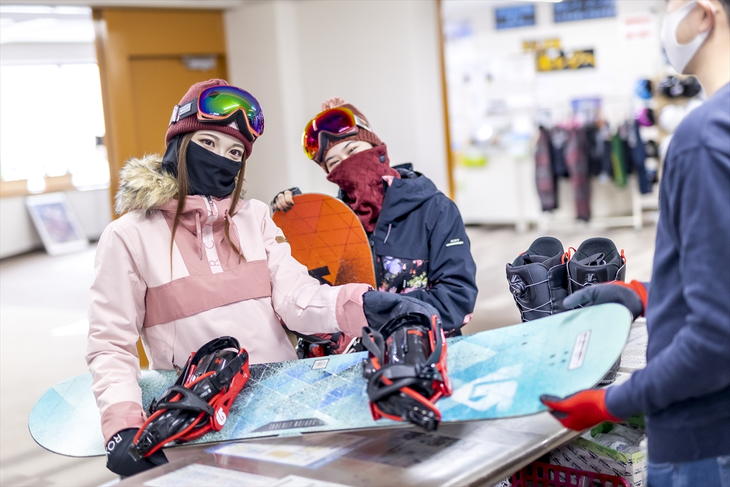BURTONがレンタル用に開発した「LTR」モデルを用意。ネットで事前予約ができるので、到着後すぐにレンタルしてゲレンデへ向かうこともできる。上級者用のエキスパートモデルもあるので、興味のある人は利用してみよう。