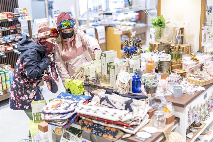 センターステーション1階にある売店は、帰りがけのお土産はもちろん、滑走用の小物類も取り揃えているので、ビーニーやグローブなどをうっかり忘れてきてしまっても大丈夫。