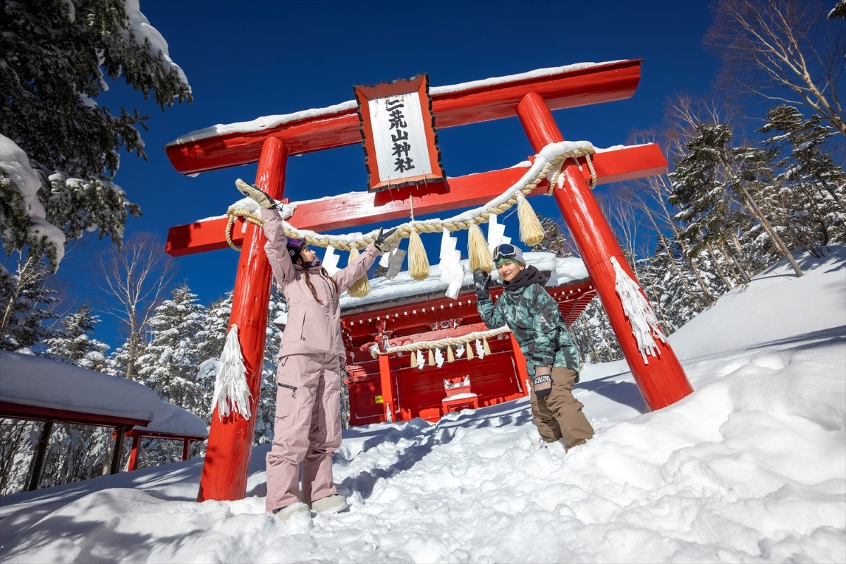 真っ白な雪と青空の間に、朱く塗られた社がとっても印象的で超感動モノでした。