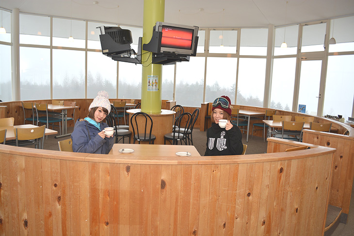 中腹に建つ、パノラマ回転レストハウス「Tee Horn」は、円柱型のレストランの中央部分がゆっくり回転するというユニークな造り。窓の外には、御嶽山、乗鞍岳、中央アルプスがレストハウスを取り巻くように広がり、のんびり食事やお茶休憩をしているうちに、すべての景観をぐるりと満喫することができる。
