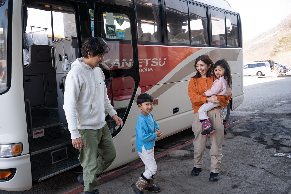 ファミリーでのスキー旅行は荷物も多く、慣れない行程に移動だけで大人も子供もクタクタになりがち。そこで今回、水上高原スキーリゾートへは上越新幹線を利用して「上毛高原駅」から無料シャトルバスという手段をチョイス。雪道を運転することなくホテル目の前まで到着できるので、家族全員が遊ぶエネルギーを充分に温存でき、到着と同時に雪遊びパワー全開!