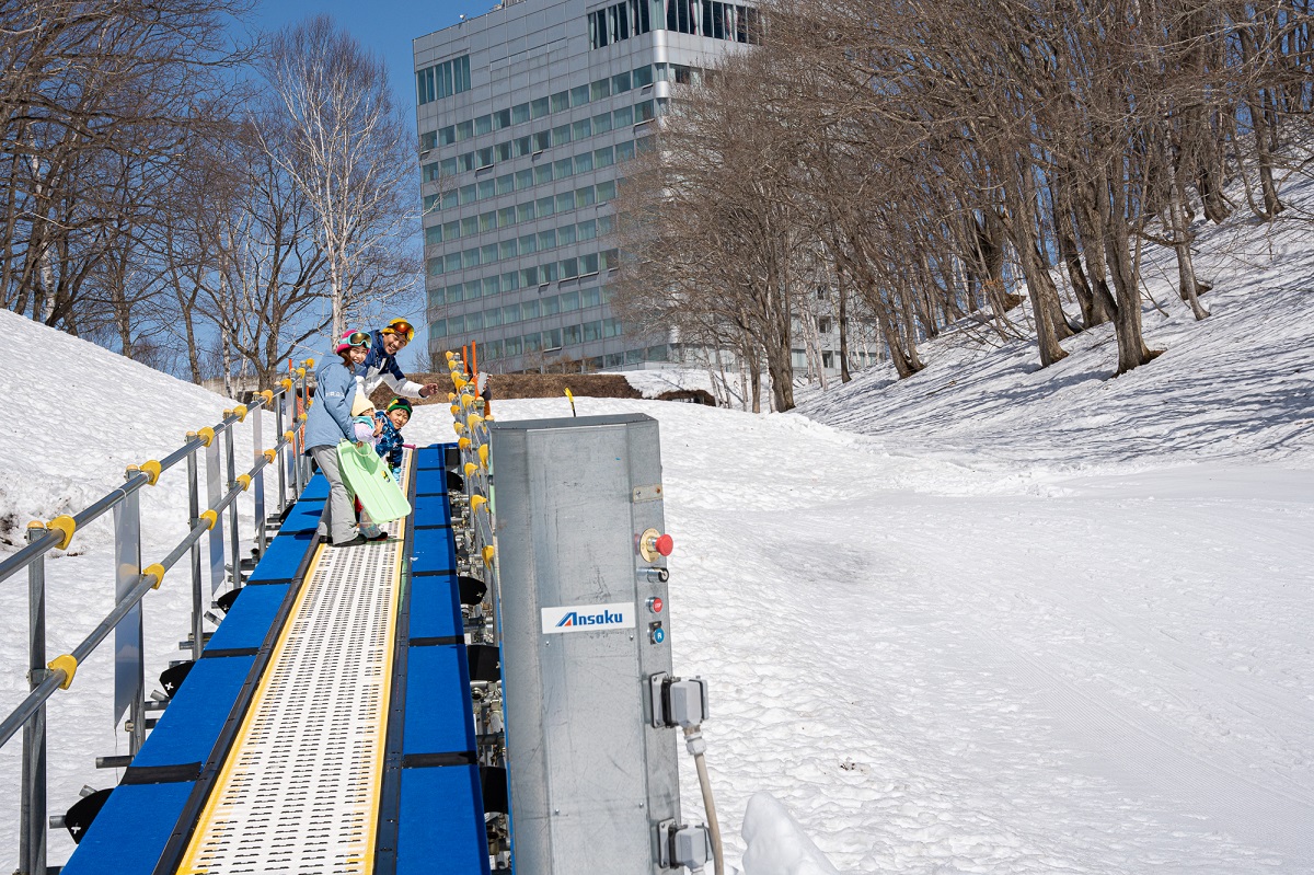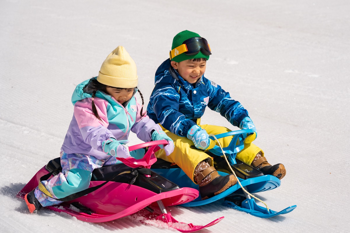 キンダーガーテンでは、そり、スノーチュービング、スノーストライダーなどで遊ぶことができ、スノーエスカレーターで上りもラクラク。普段は雪に馴染みがない子どもも、あっという間に雪遊び大好きになるはず。