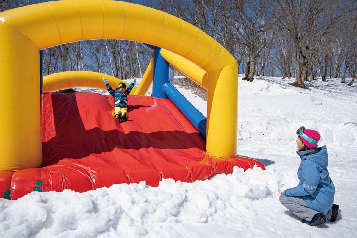 水上高原スキーリゾートには、デビューから上級者までが満足する全12ものコースが揃う。まず子どもと一緒に滑るのにオススメなのは、ワイドな緩斜面で周りのスキーヤーを気にせずゆっくり練習できる「ダンダン畑コース」。ちびっこも安心して楽しめる変化に富んだコースで、コース下部にはちびっこに人気のゲレンデアトラクションがある。