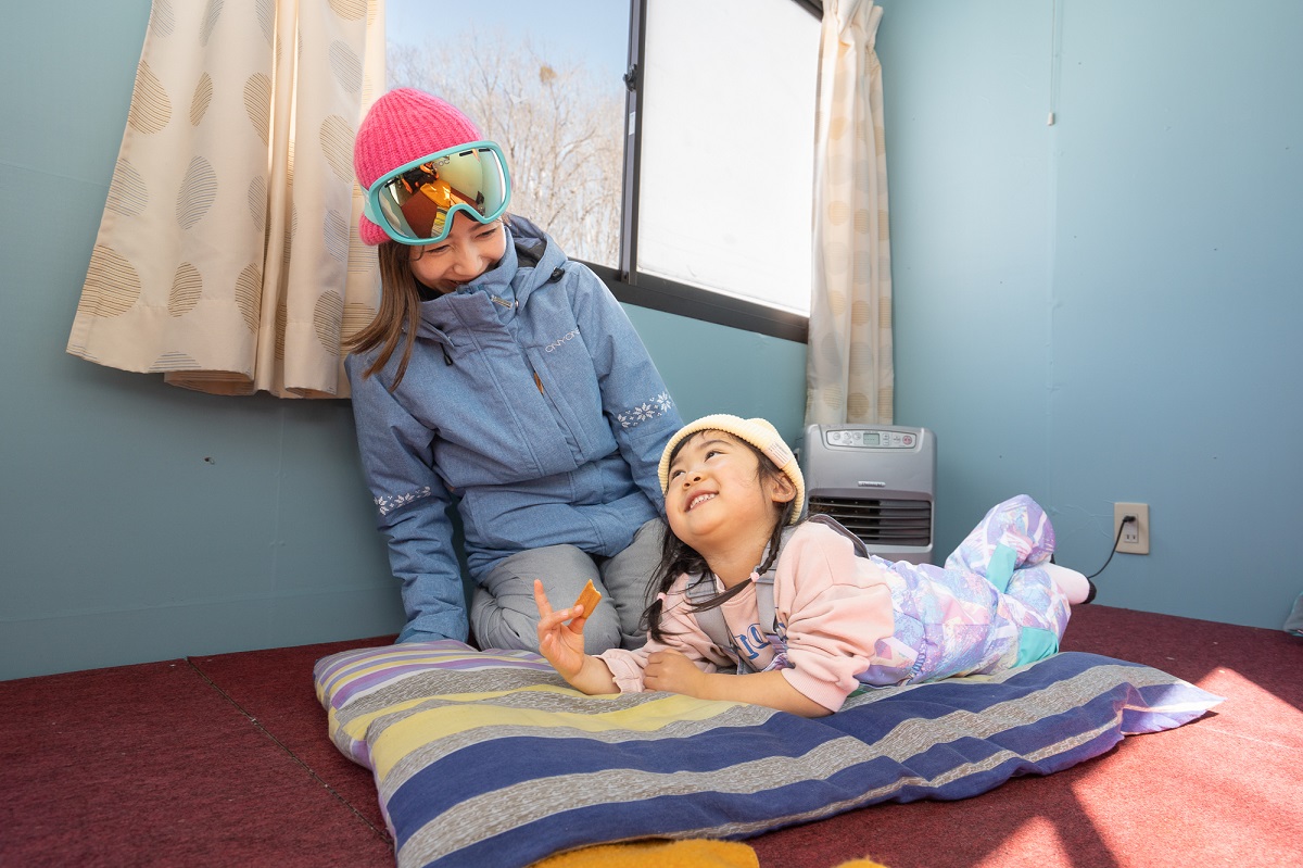 いっぱい遊んでちょっと疲れたちびっこは「暖房付休憩室」でひと休み。 遊びに夢中になりすぎて体が冷えてしまわないようにするのも、雪遊びを楽しむ秘訣!