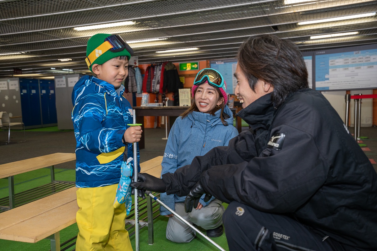 雪とすっかり仲良くなったら、スキーにもチャレンジしてみよう。ギアはチェックイン前でもレンタルで借りることができる。小さな子供用から大人用まで、豊富なサイズを揃えており、スタッフが丁寧に道具をチョイスしてくれるから安心だ。