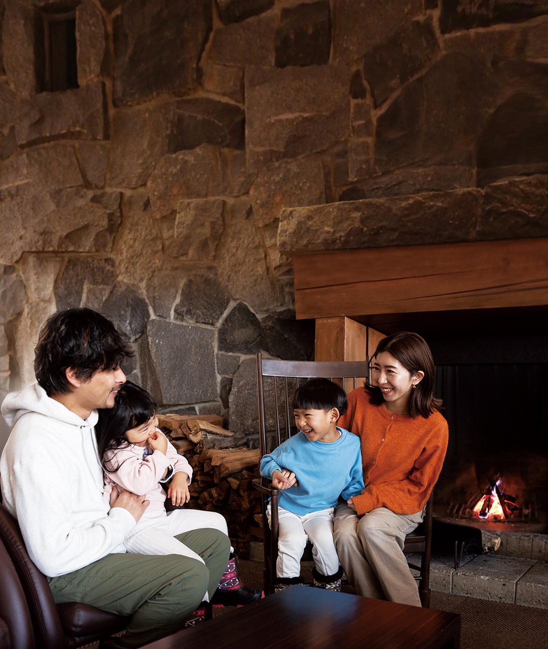 存分に外遊びを楽しんだら、ゲレンデ目の前のホテル「水上高原ホテル200」でのんびりと寛ぐ家族のひと時を。ゆったりとしたロビーの暖炉には暖かな火が灯り、すっかりリラックスして日常を忘れた贅沢な時間を満喫できる。