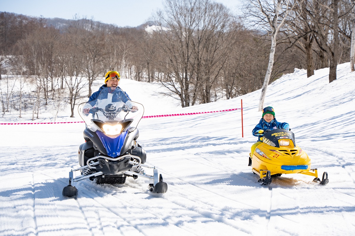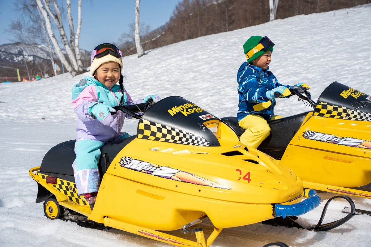 かっこいいスノーモービルを自分で運転し、専用コースを周回できる体験スノーモービルもここならでは。自転車が乗れれば体験可能なちびっこモービルなら、小さな子どもも安全にモービルを操縦できて大満足。親子で各1台ずつモービルに乗る親子体験ドライブもあるので、一緒にツーリング気分を楽しめる。