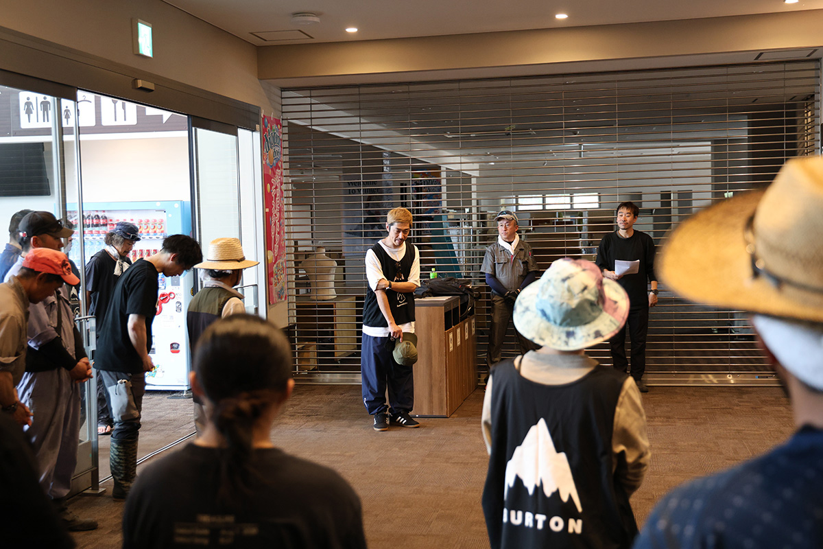 我々が参加したたんばらスキーパークでは、当日朝10時に集合。通年でたんばらスキーパークに勤務しているスキー場関係者、原宿のBURTON FLAGSHIP STORE TOKYOスタッフ、そして事前応募をしてくれた一般参加者が集まった。参加者は群馬県内からばかりでなく、埼玉県や千葉県、東京など遠方からの参加も多く、その意識の高さに驚かされた。