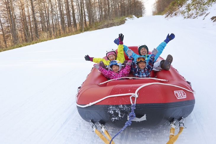 スキーやスノーボードでの滑走以外にも、子どもはもちろん、大人も楽しめるスノーアクティビティが充実しているのも、「マウントジーンズ那須」の注目ポイントだ。