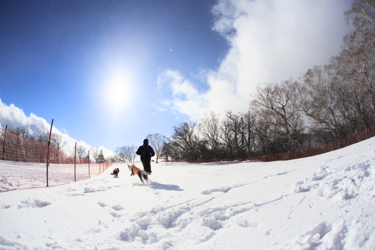 また、ゴンドラで行ける標高1,410mの山頂には、雪上ドッグランもある。愛犬家も、家族の一員であるワンちゃんと一緒に、雪遊びを楽しめる。雪上ドッグランへの入場は無料だ。
