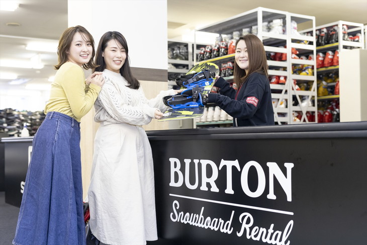 従来はスキー場でチケットの購入で窓口に並んだり、スノーボードやスキーなどをレンタルする場合、申込書に必要事項を記入したり、身分証明書を用意しなければいけないなど、滑る前に時間が掛かってしまったが、事前に手続きを済ませておけば、これまでより早くゲレンデに出て、長く滑ることができるのだ。スノーボードのレンタルも人気のバートンをラインナップ。